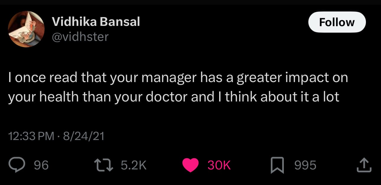 Long ago, I reminded of the heavy, and often invisible, weight we carry as leaders when I came across this tweet by Vidhika Bansal (the whole thread is actually fire!):
